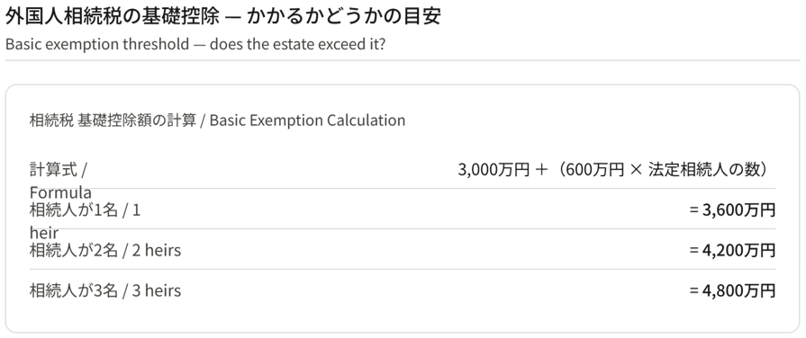 外国人相続税の基礎控除 — かかるかどうかの目安 Basic exemption threshold — does the estate exceed it?