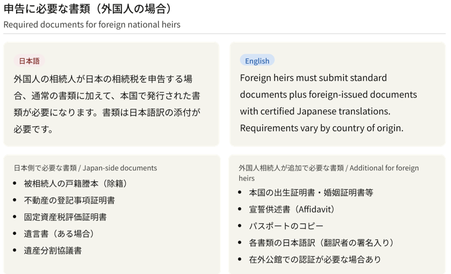 外国人相続人が追加で必要な書類 / Additional for foreign heirs
